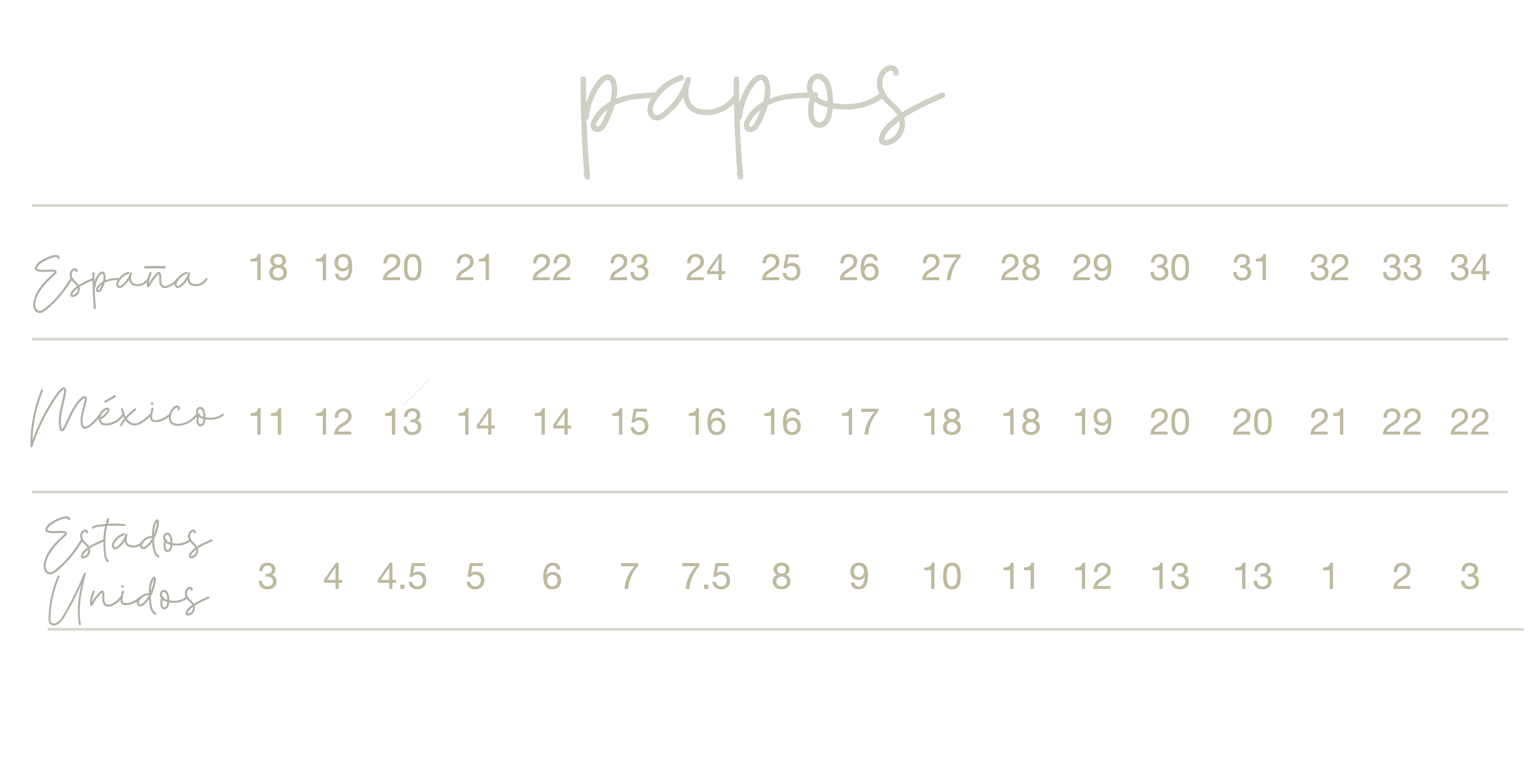 Nuestras tallas son Europeas, en esta tabla puedes hacer la conversión de otras tallas a las nuestras. Cualquier duda, nos ponemos a tus órdenes en nuestro chat.